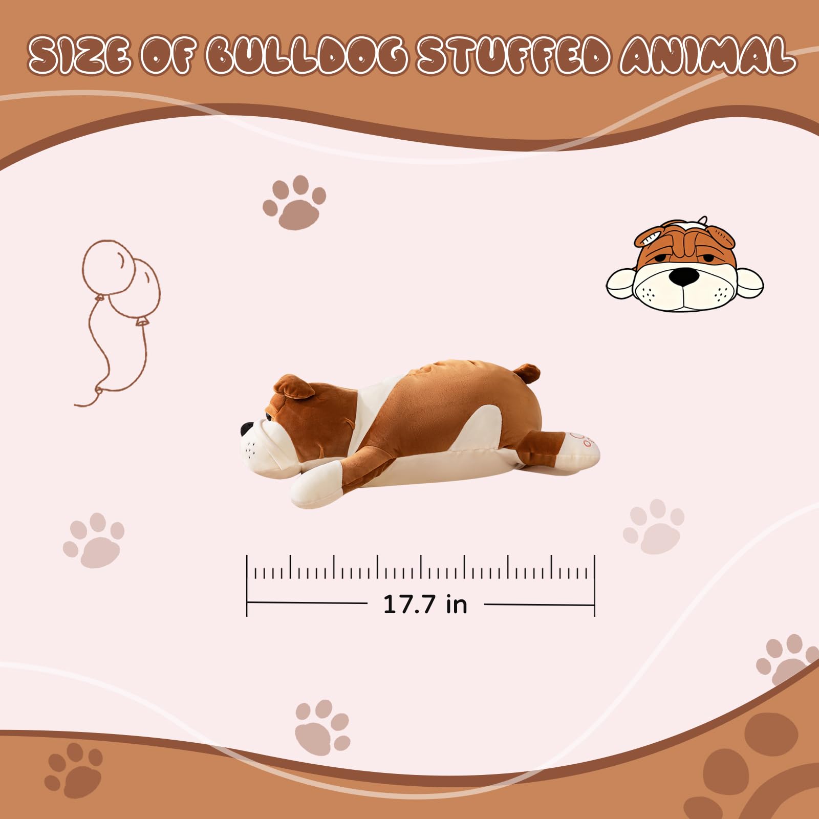 Dog Stuffed Animals, Brown 17.7in Dog Plush Bulldog Stuffed Animals Big Stuffed Animal Christmas Birthday Gifts for Kids Boys and Girls